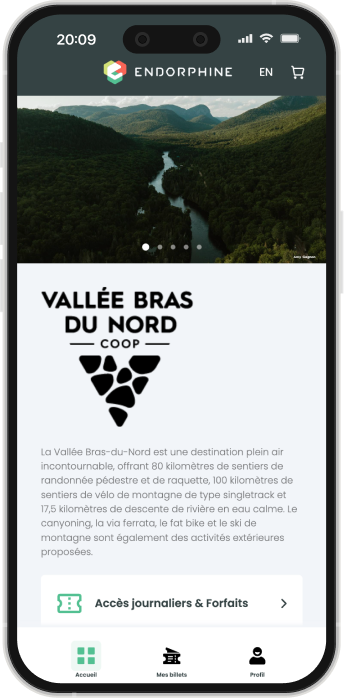 Endorphine.ca est une solution tout-en-un de gestion et de réservation en ligne pour les loisirs de plein air qui vous aide à développer votre entreprise.